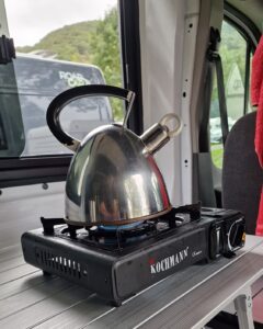 Ich hatte einen 5l-Wasserkanister im Auto und einen Gaskocher – konnte also auch jederzeit Teewasser oder Wasser für „5-Minuten-Terrinen“ machen. Die Kühlbox war gut gefüllt und eine Euro-Box mit Snacks, und Instant-Nudelsuppen gab’s für „Notfälle“ auch noch. Abends wurde dann bei den Nachbarn gegrillt. Verhungert bin ich also nicht.