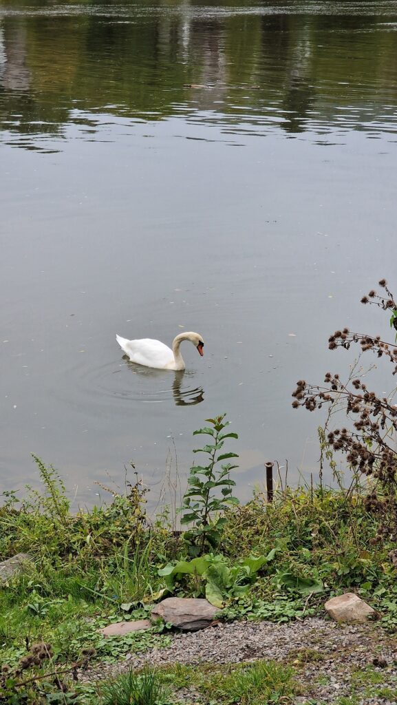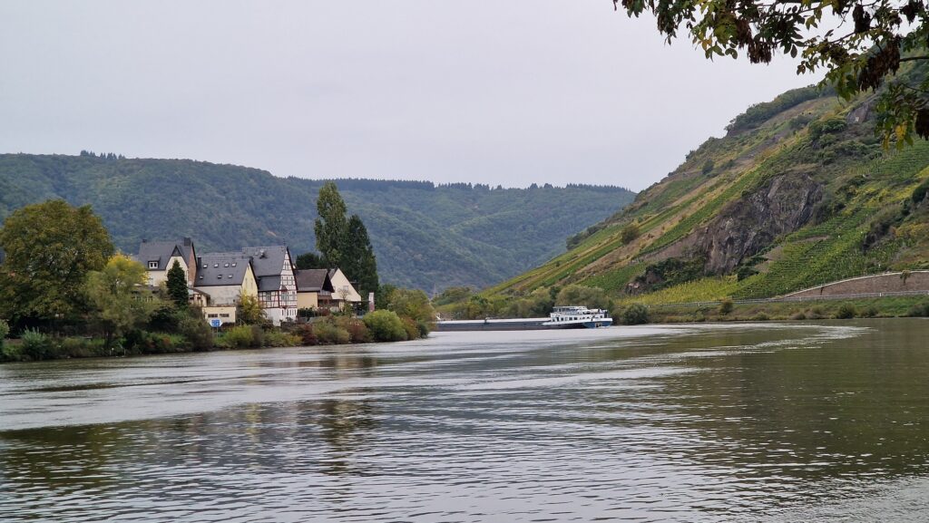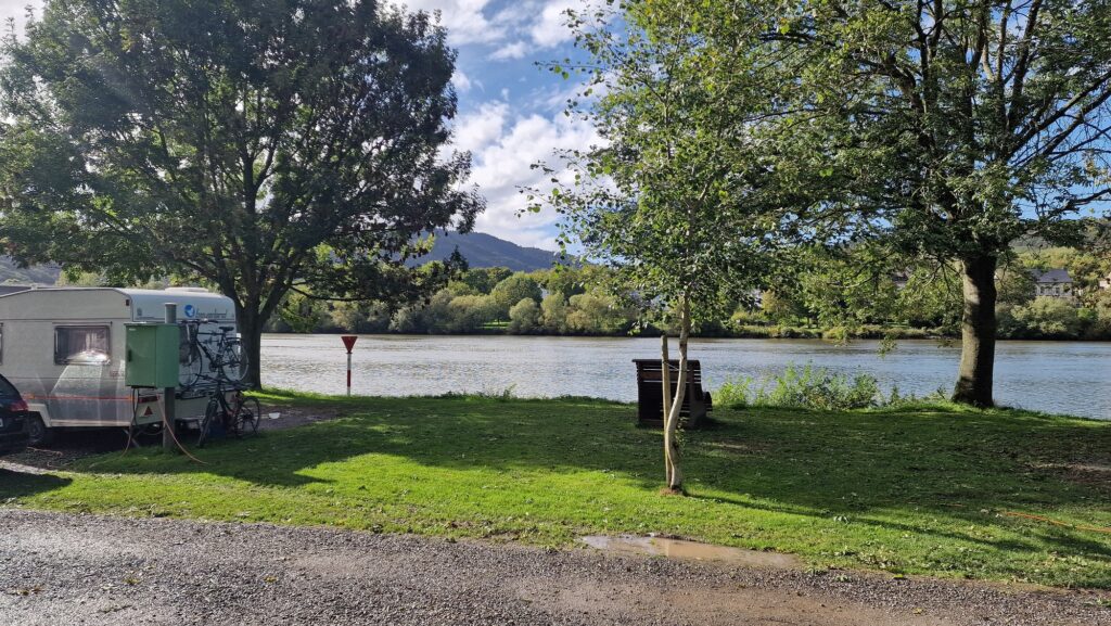 Mein Stellplatz war quasi „2. Reihe mit Blick auf die Mosel“ – ich hatte nur einen Weg und etwas Wiese zwischen mir und der Mosel – konnte also bei offener Tür oder auf meinem Platz den Blick auf den Fluss genießen