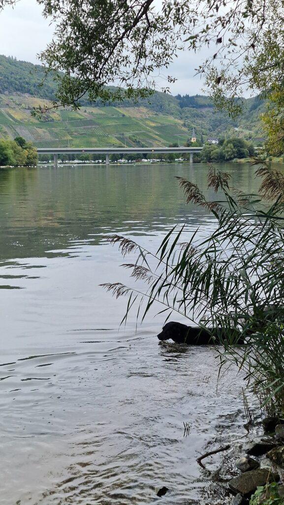 Für Hunde ist der Platz auch gut geeignet. Man soll zwar auf dem Platz nicht „Gassigehen“, bei einem kleinen Morgen-Pipi an den Baum oder in den ein oder anderen Busch hat aber niemand etwas gesagt. Direkt an einem der Ausgänge vom Platz gab es einen langen Spazierweg. Da konnte man dann ausgiebige Runden zwischen Mosel und Weinbergen machen. In der „Hundeabteilung“ des Platzes, warum darum auch sehr viele Hunde in der Nachbarschaft zu treffen. Darum traf man auf den Spaziergängen auch immer wieder mal einen.