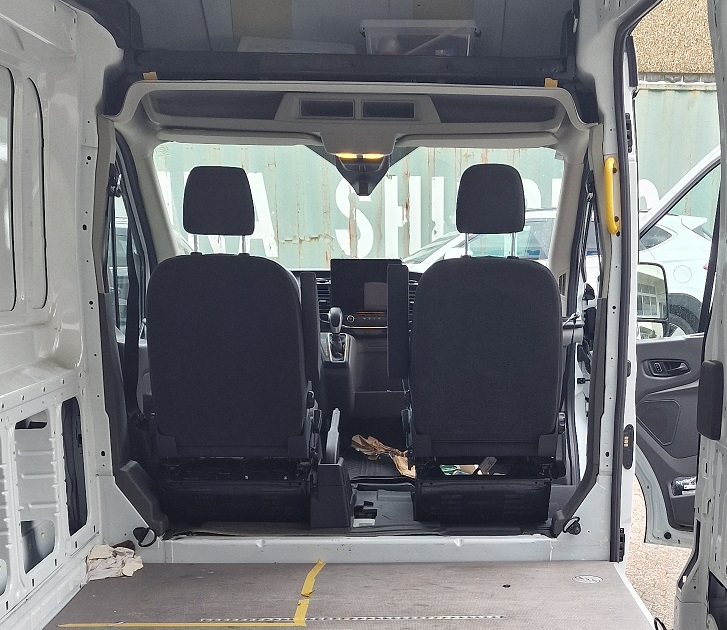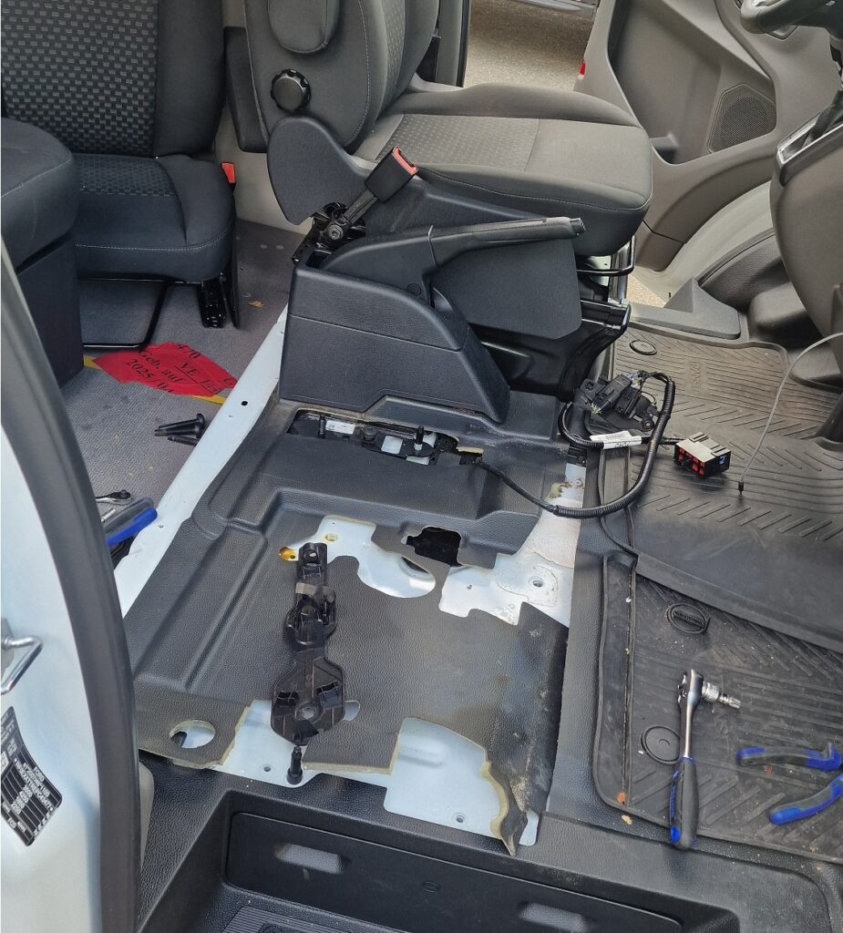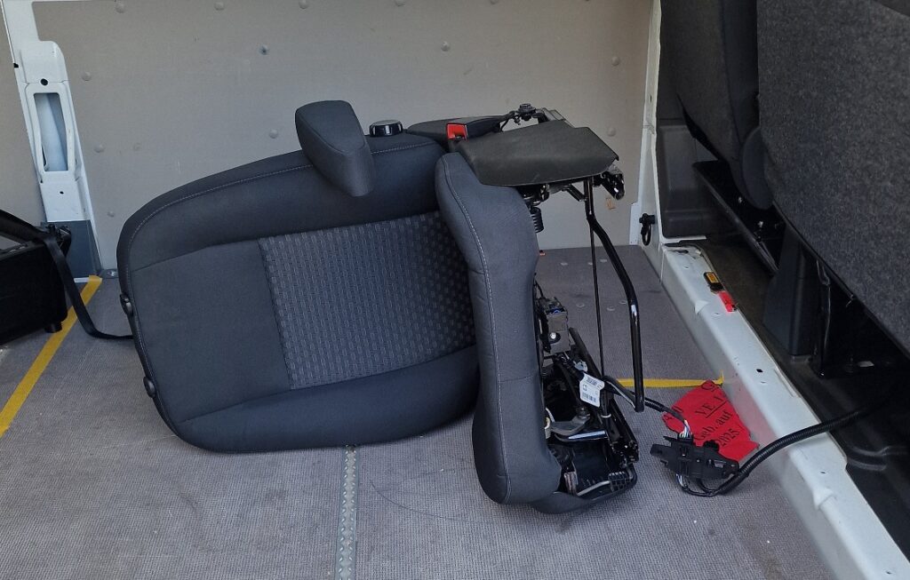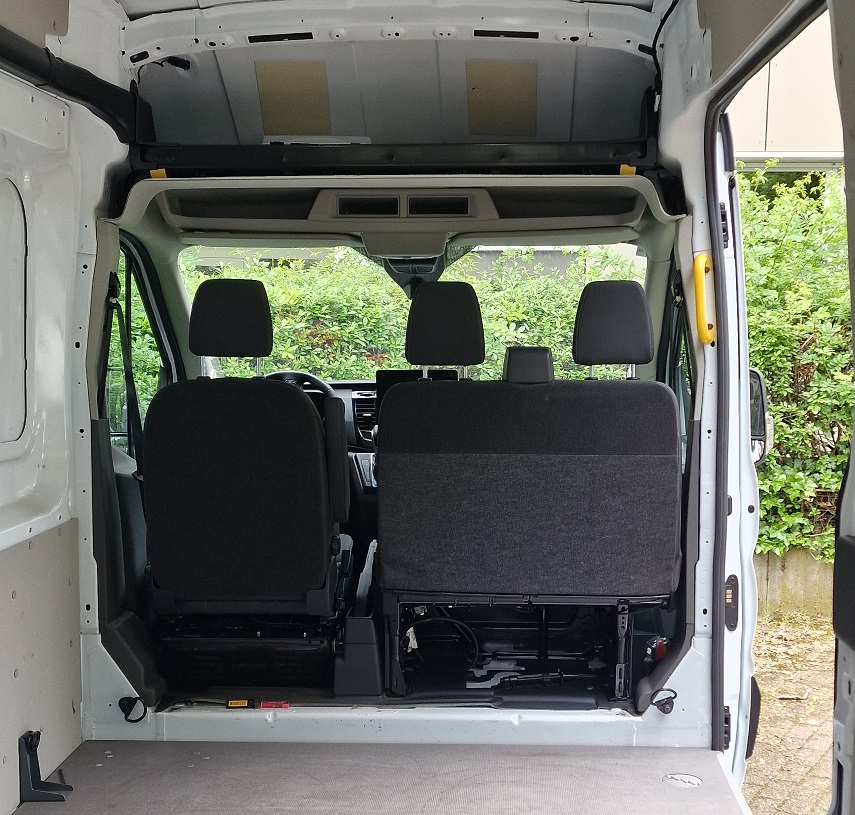 Um besser von Fahrerkabine nach hinten zu kommen, haben wir uns dazu entschieden, die 2er Sitzbank durch einen Einzelsitz zu ersetzen.