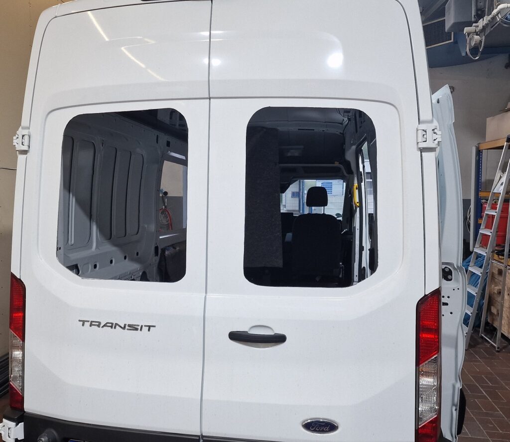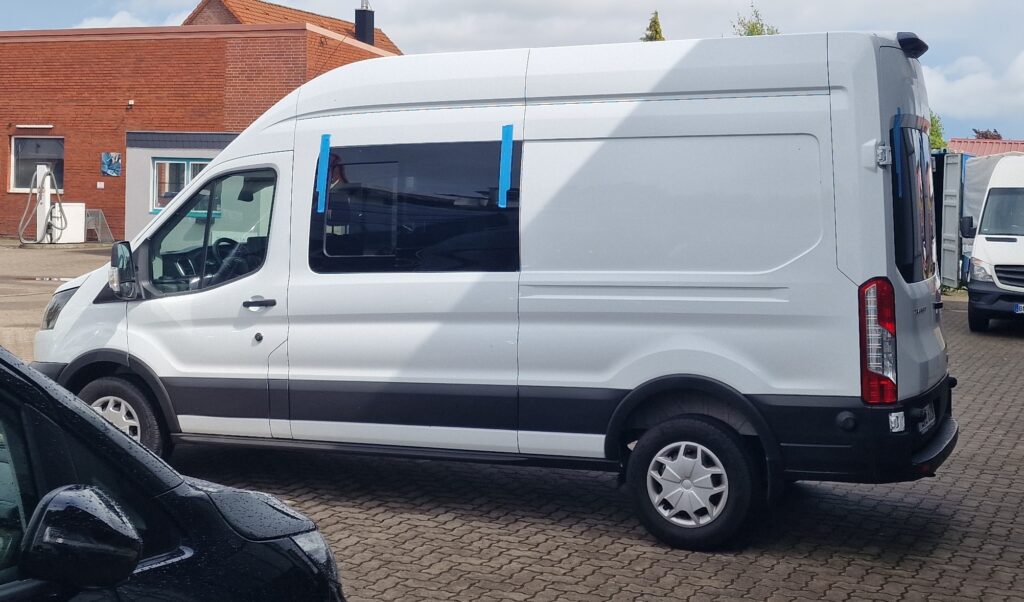 Jetzt sieht der Van nicht mehr so nach „Kleintransporter“ sondern direkt etwas mehr nach „Camper“.